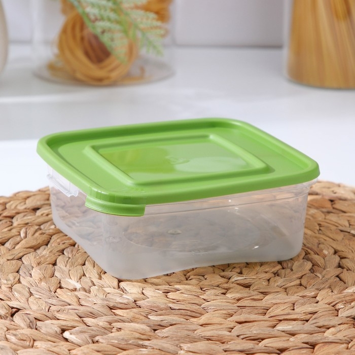 Набор контейнеров пищевых Доляна, 5 шт, 460 мл, 11×11×11 см, квадратные, прозрачные, крышки зелёные