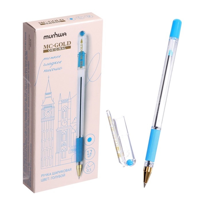 Ручка шариковая MunHwa MC Gold, узел 0.5 мм, резиновый грип, чернила голубые