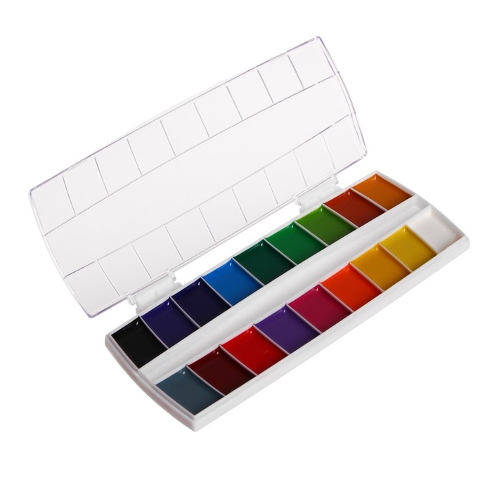 Краски акварельные, в кюветах, с кистью, 12 цветов