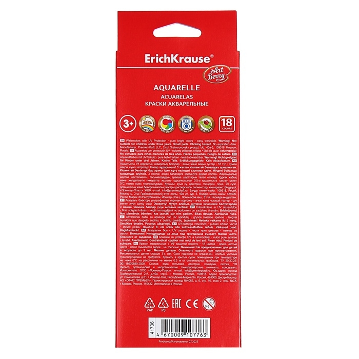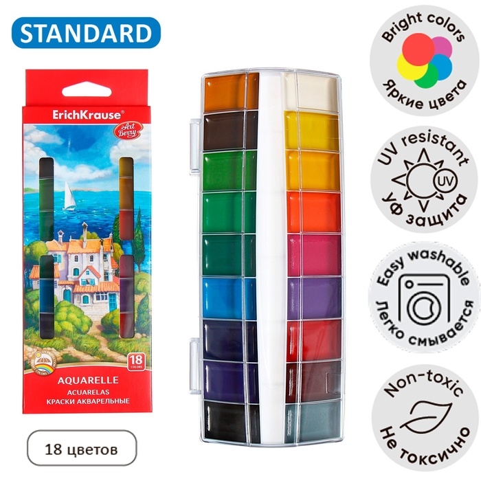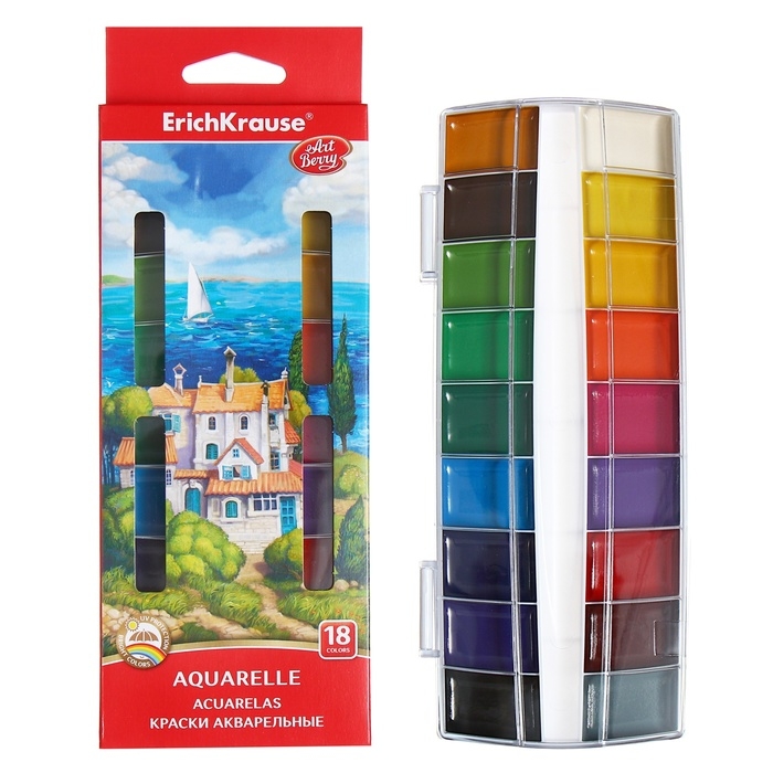 Акварель 18 цветов ErichKrause ArtBerry "Премиум", с УФ-защитой, с увеличенными кюветами XXL, пластик, европодвес, без кисти