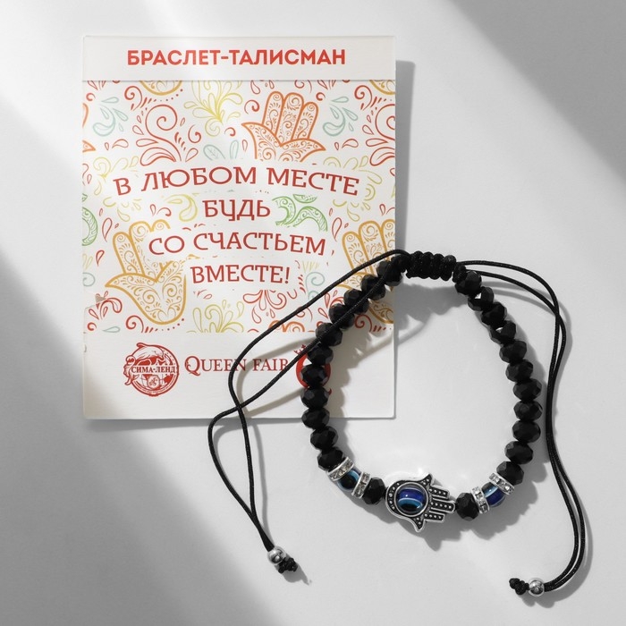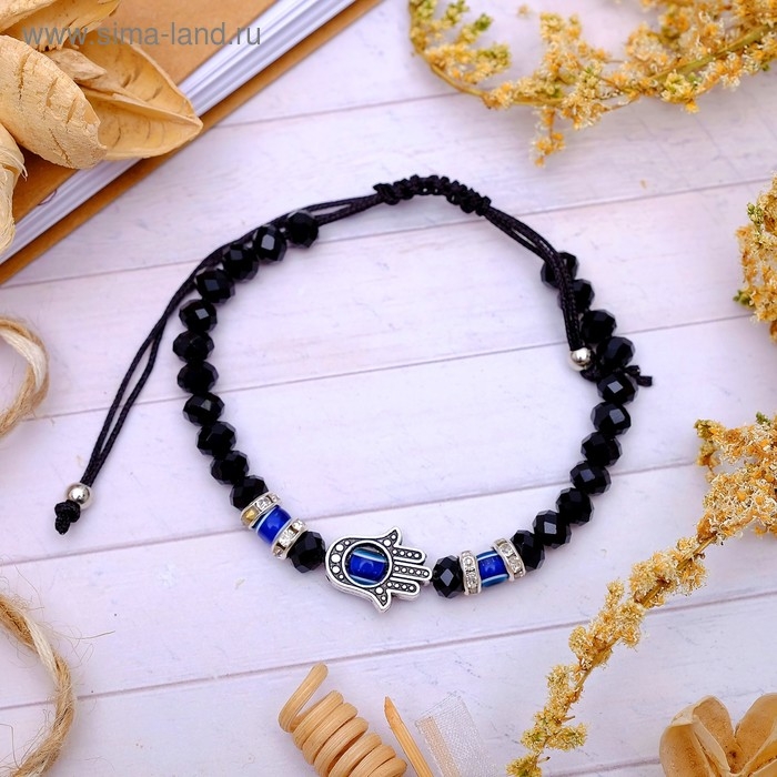 Браслет-оберег «Рука счастья Хамса» хрусталики, цвет чёрно-синий с чернёным серебром, d=8 см