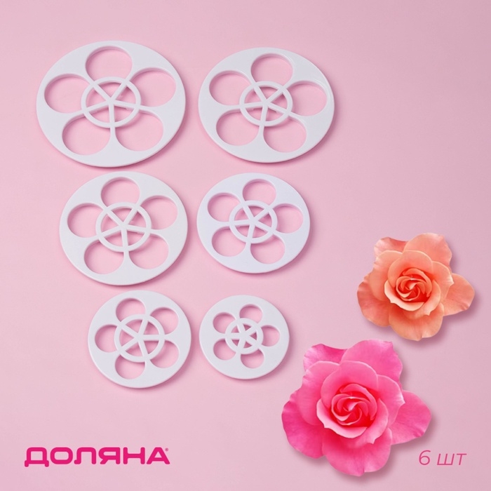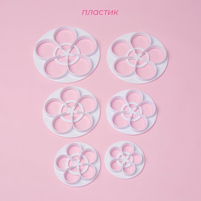 Выемки для теста и мастики Доляна «Цветы», пластик, набор 6 шт, белые