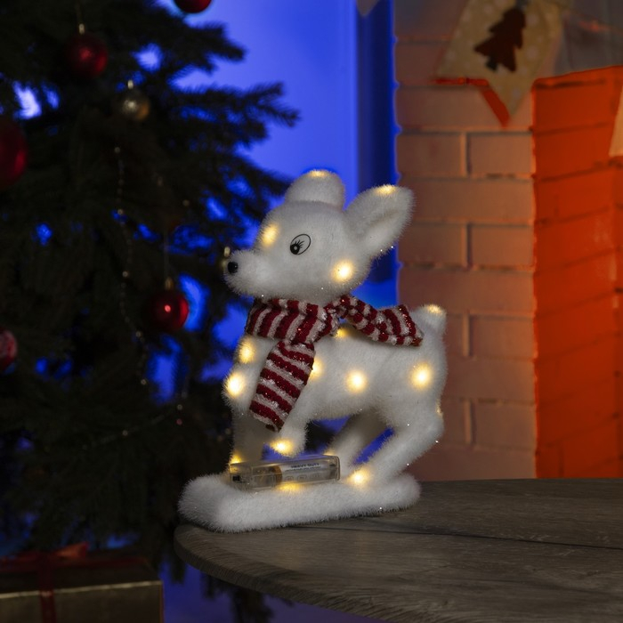 Светодиодная фигура «Оленёнок» 18 × 28 × 14 см, флок, батарейки ААх2 (не в комплекте), свечение тёплое белое