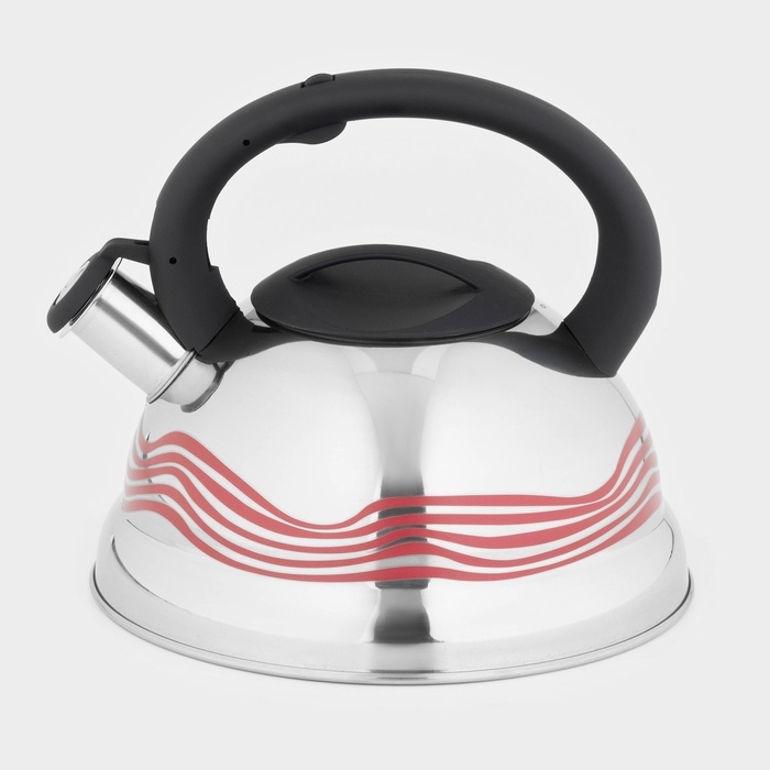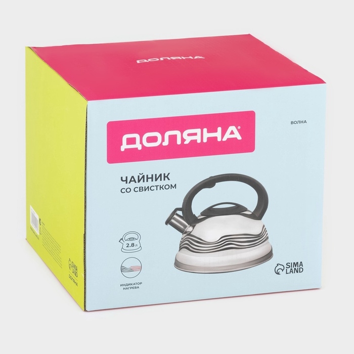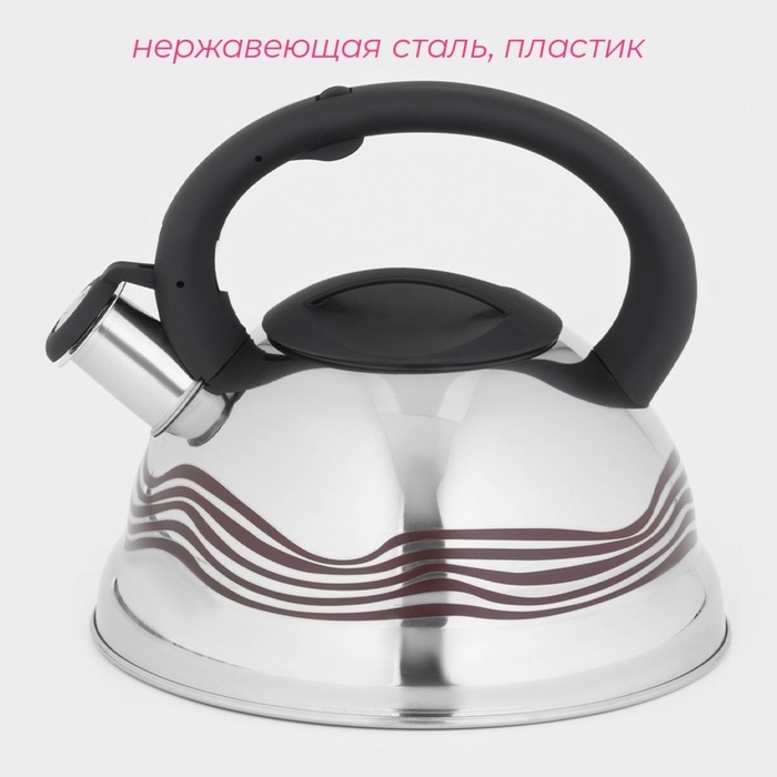 Чайник со свистком из нержавеющей стали Доляна «Волна», 2,8 л, с индикатором нагрева, фиксированная ручка