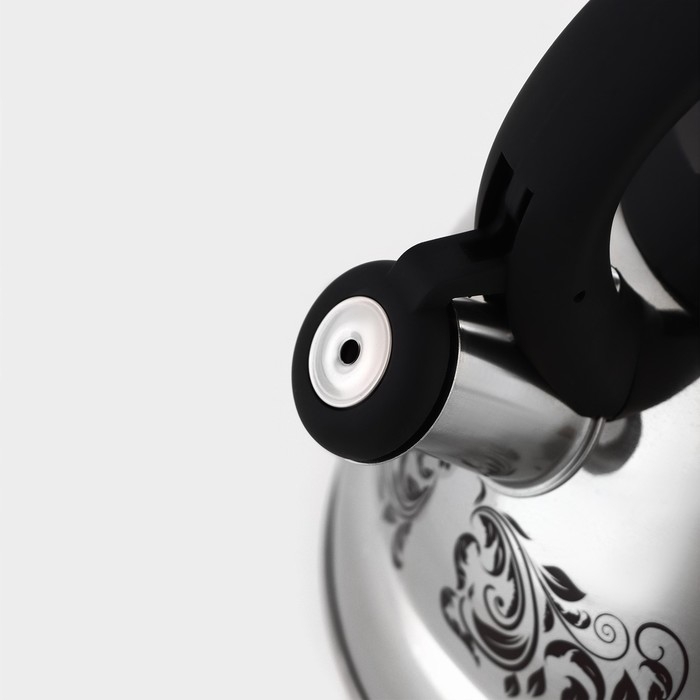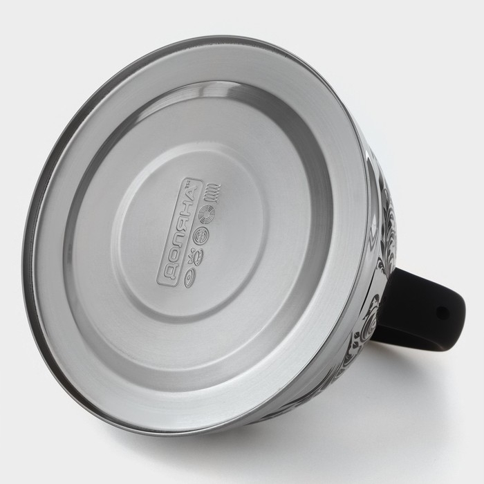 Чайник со свистком из нержавеющей стали Доляна «Чёрная ночь», 2 л, индукция, цвет хромированный