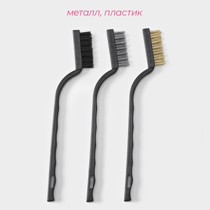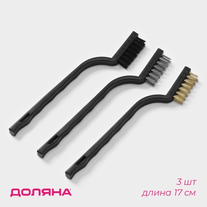 Набор щёток Доляна, 3 шт: латунная, стальная, нейлоновая