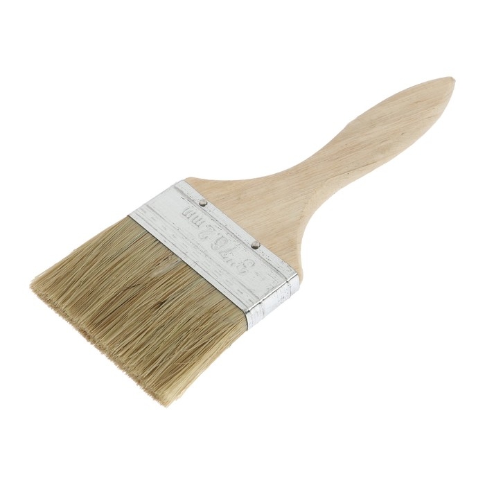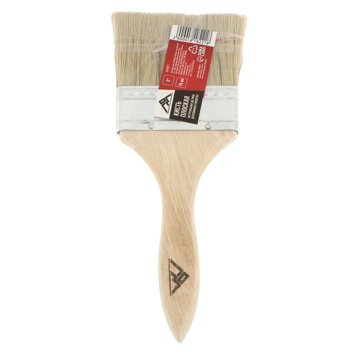 Кисть плоская ЛОМ, натуральная щетина, деревянная рукоятка, 3", 75 мм