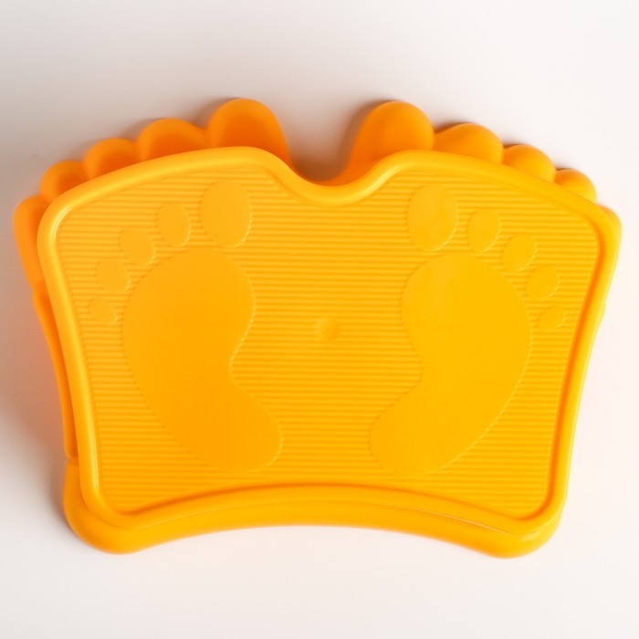 Рельефный узор в виде забавных пяточек, защитит ножки малыша от скольжения по поверхности табуретки-помощника.