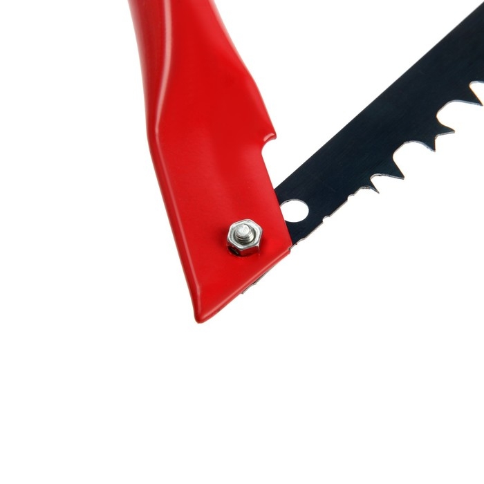 Лучковая пила ТУНДРА предназначена для работы в саду. Инструмент имеет изогнутую скобу, благодаря которой им удобно спиливать ветки и сучки.