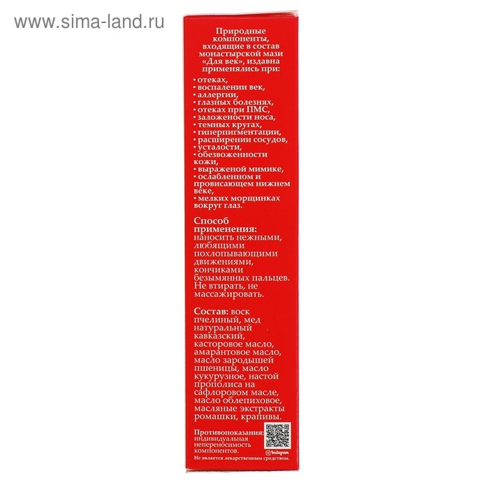 Мазь монастырская «Для век», 20 мл