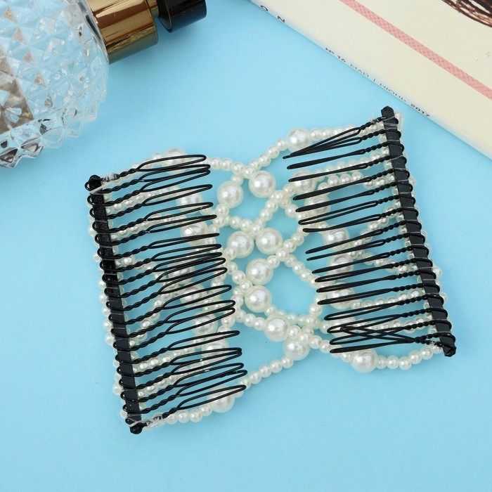 Зажим для волос "Жемчужная сетка" шарики, 9 см, чёрный