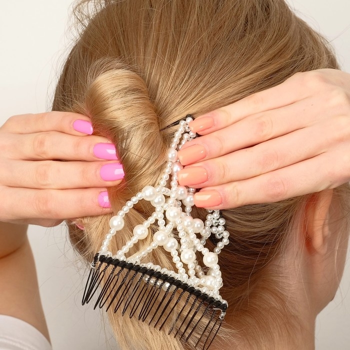 - Закрепите одну половину заколки (гребень) в волосах, с одной стороны.