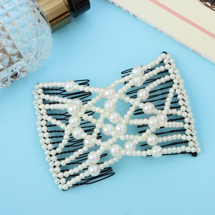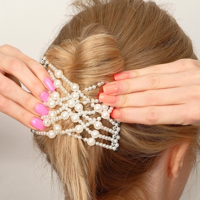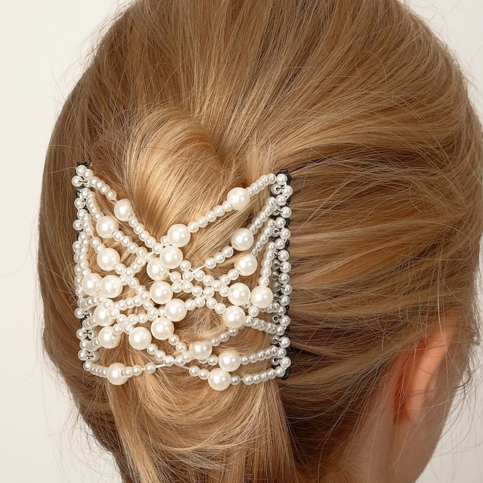 Зажим для волос "Жемчужная сетка" крупная бусина, белый