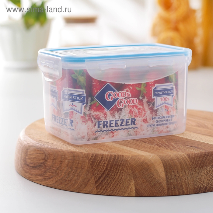 Контейнер пищевой Good & Good, 1 л, с герметичной крышкой, пластик, крышка голубая