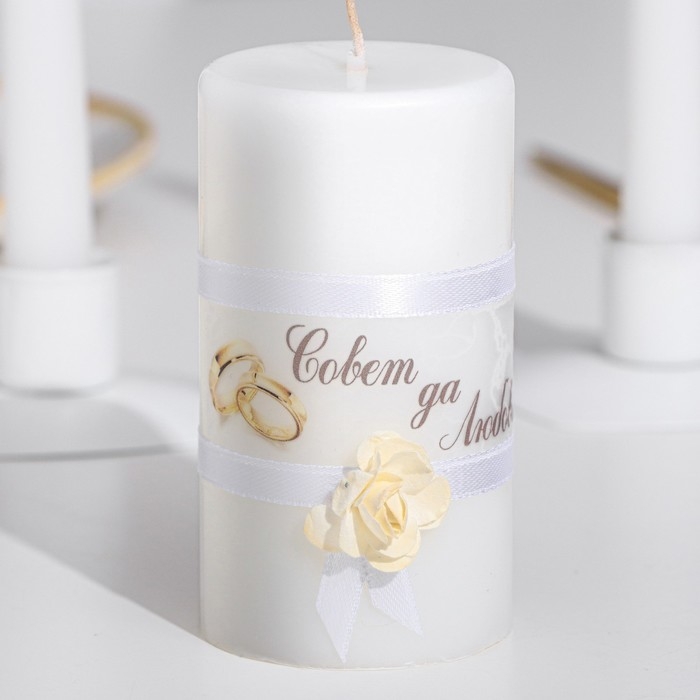 Набор свадебных свечей "Совет да любовь с розой"белый: родительские 1,8х15см; очаг 5х9,5см