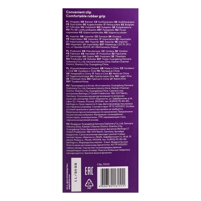 Выберите шариковую ручку Berlingo I-15 для беспроблемного письма в любых условиях. Она создана для тех, кто ценит качество и комфорт в каждой детали.