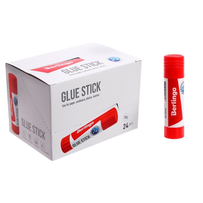 Клeй-карандаш ПВП 8 г Berlingo, с цветным индикатором
