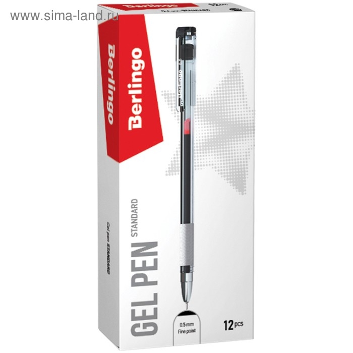 Ручка гелевая Standard, узел 0.5 мм, чернила чёрные, грип, игольчатый стержень