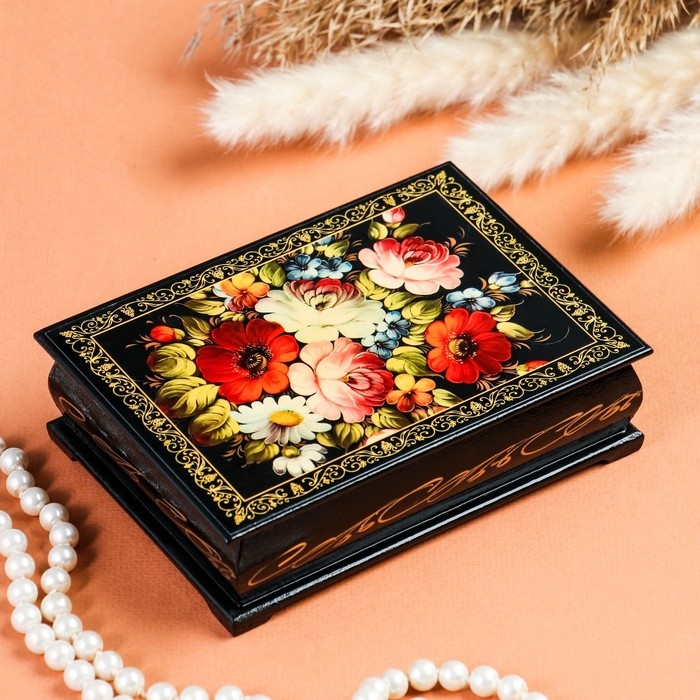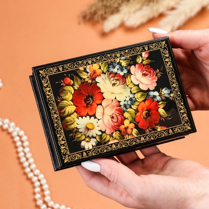 Шкатулка «Цветочная роспись», 10×14 см, лаковая миниатюра