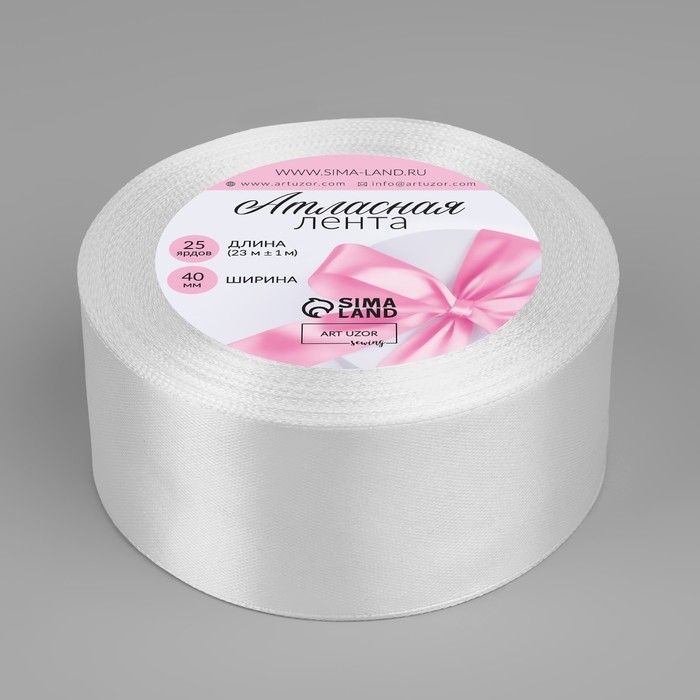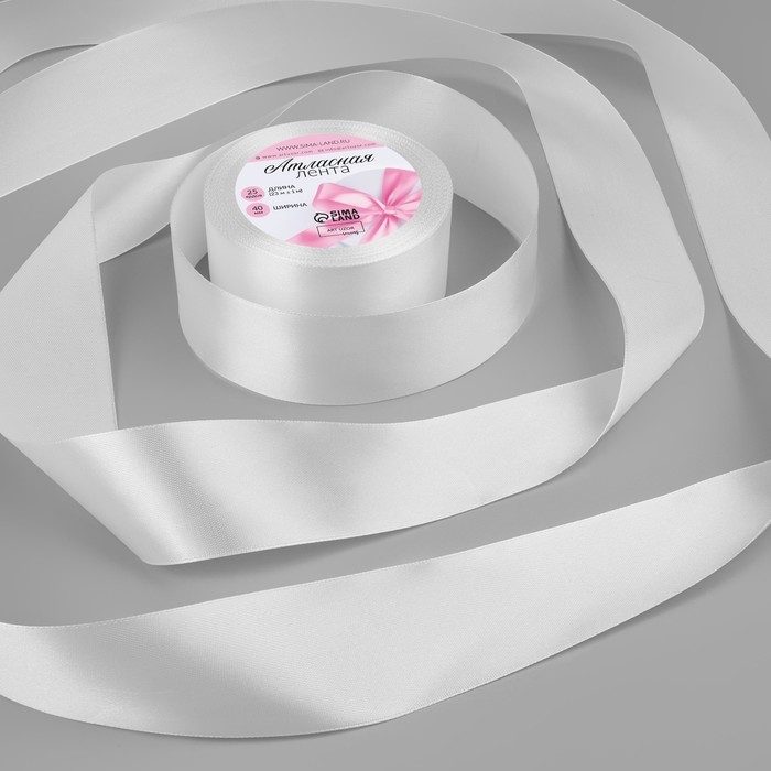 Лента атласная, 40 мм × 23 ± 1 м, цвет белый №01