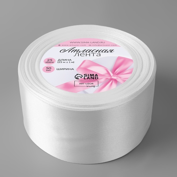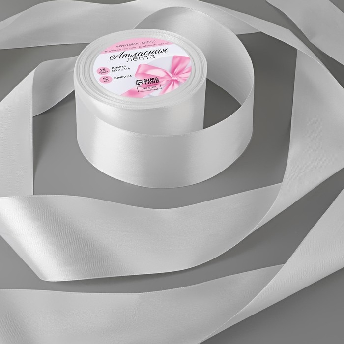 Лента атласная, 50 мм × 23 ± 1 м, цвет белый №01