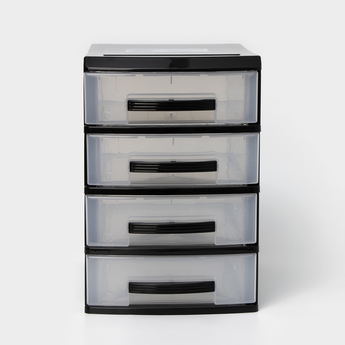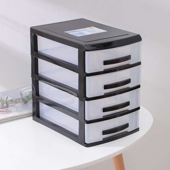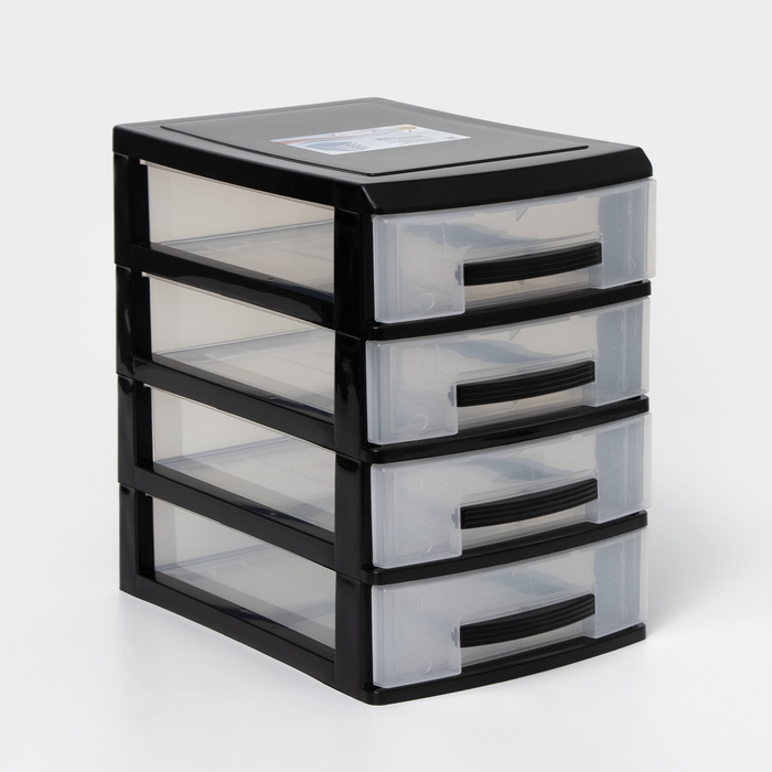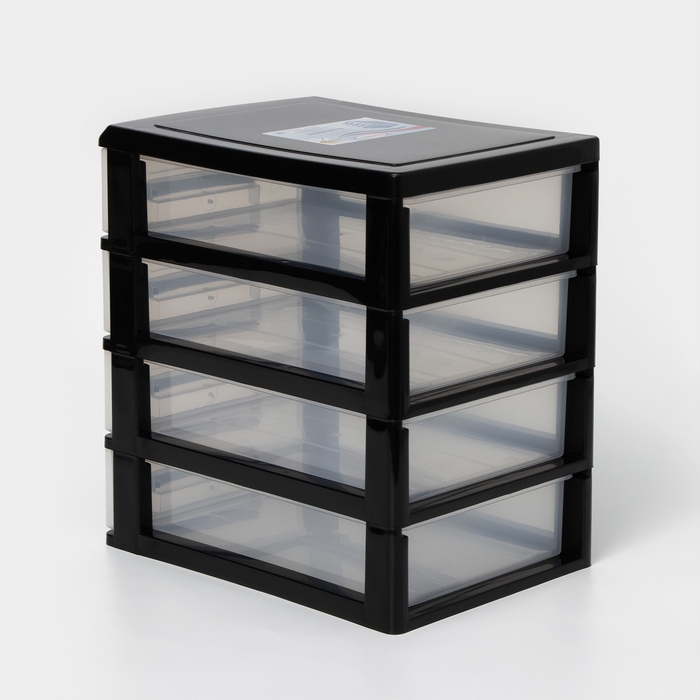 Мини-комод 4-х секционный, чёрный/прозрачный