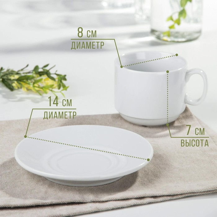 Чайная пара фарфоровая «Экспресс», чашка 220 мл, блюдце d=14 см