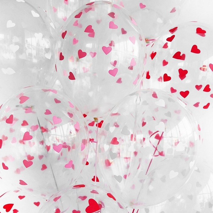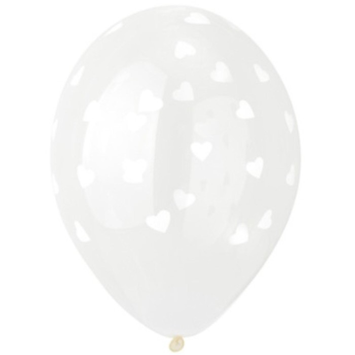 Шар латексный 14" «Сердца белые», кристалл, шелкография, набор 25 шт.