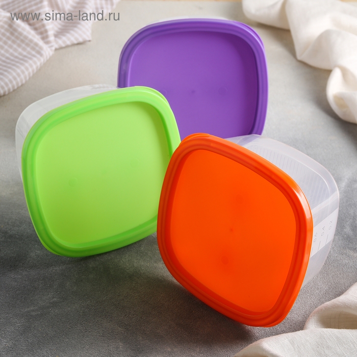 Набор контейнеров пищевых Доляна, 3 шт: 1 л, 18,5×12×7 см, прямоугольные, прозрачные, крышка зелёная