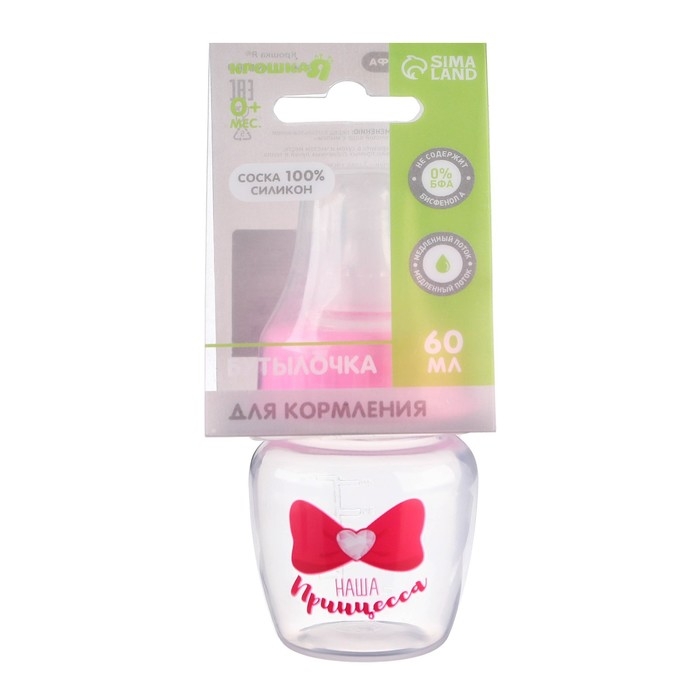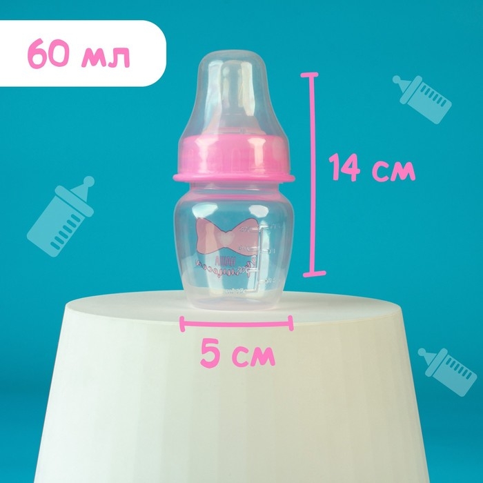 Бутылочка для кормления «Принцесса», классическое горло, 60 мл., от 0 мес., цвет розовый