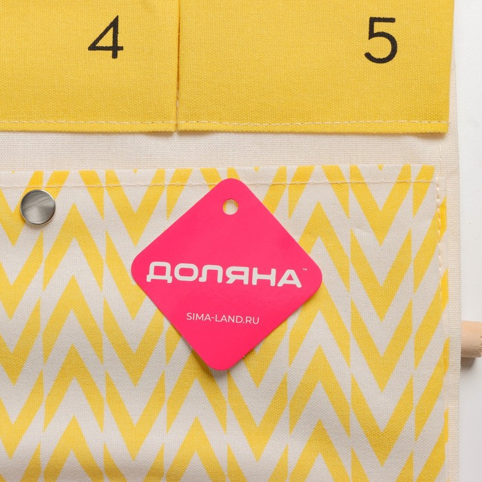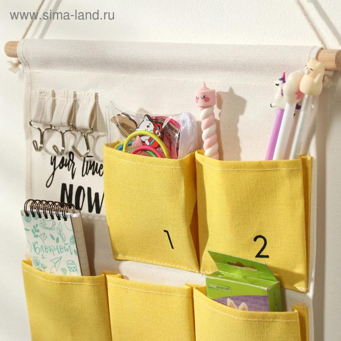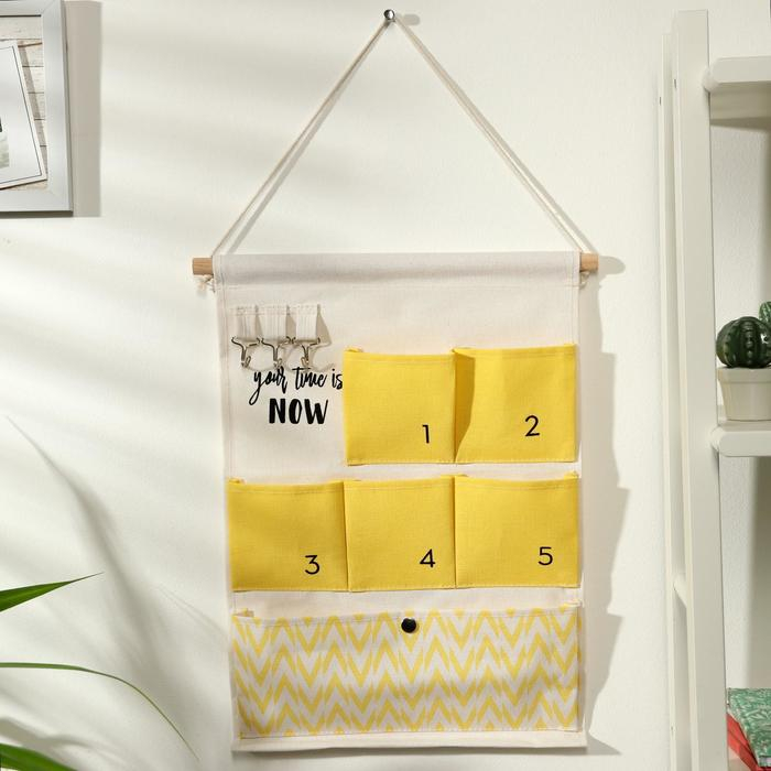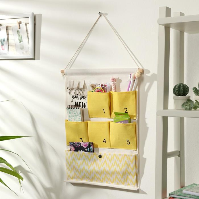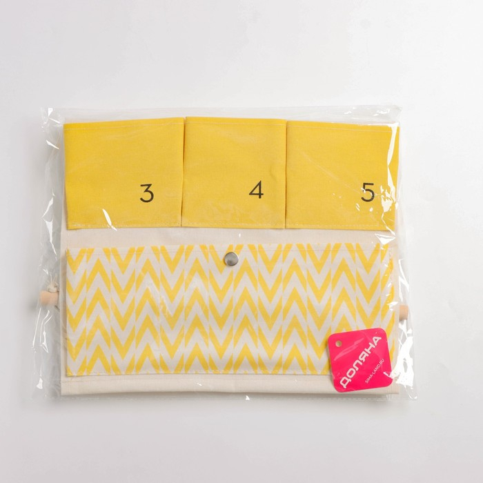 Органайзер подвесной с карманами Доляна «Время», 6 отделений, 49×35 см, цвет жёлтый
