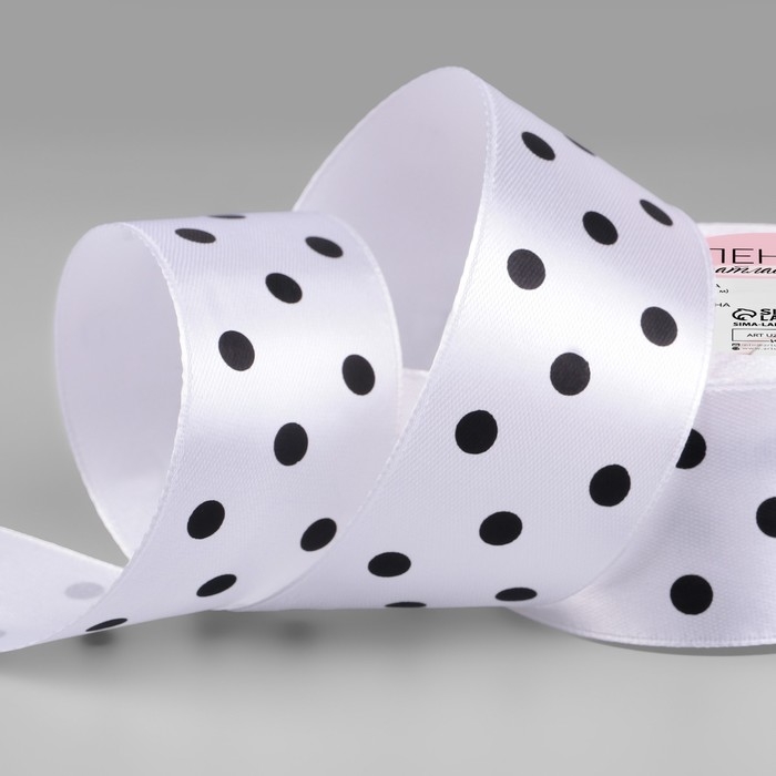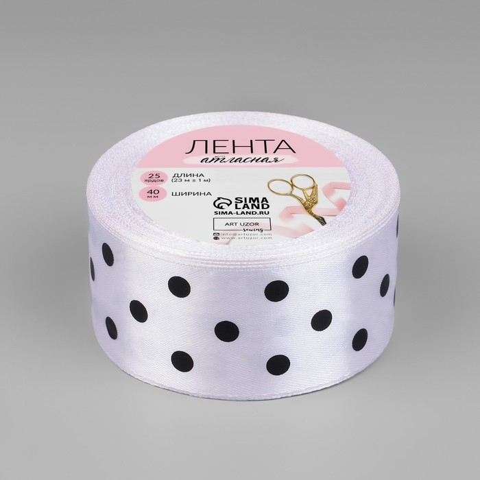 Лента атласная «Горошек», 40 мм × 23 ± 1 м, цвет белый №001
