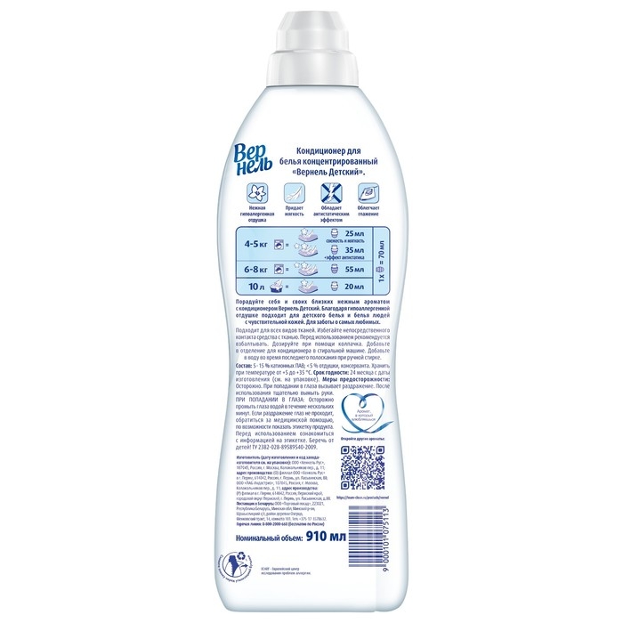 - Кондиционер Вернель Детский придает белью невероятную мягкость и свежесть.