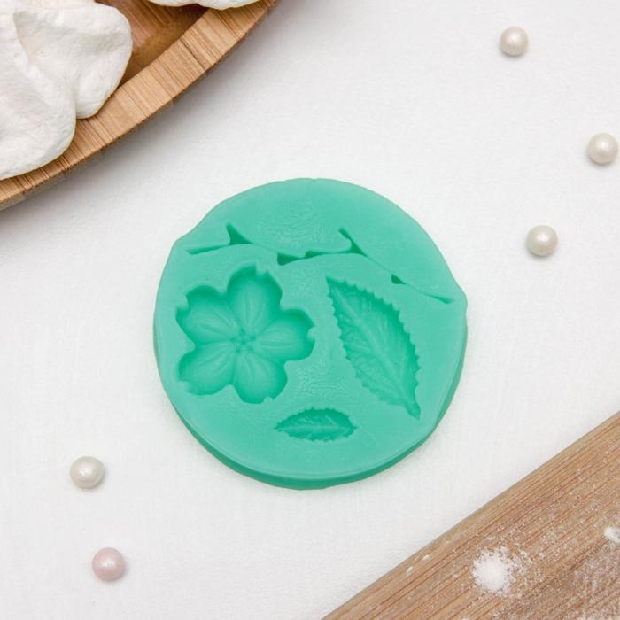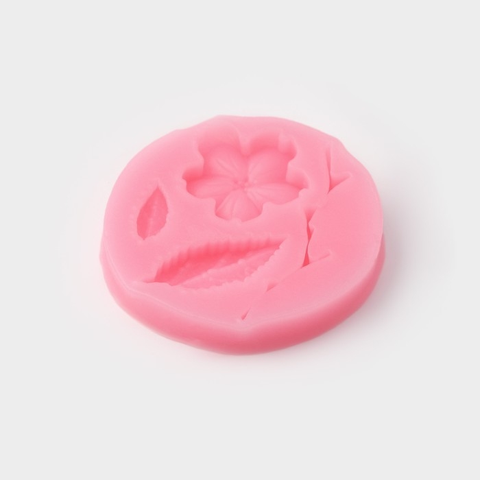 Молд Доляна «Цветок, лист и веточка», силикон, 5,5×0,9 см, цвет МИКС