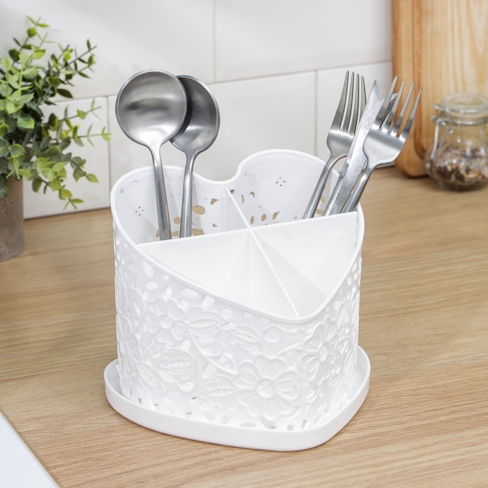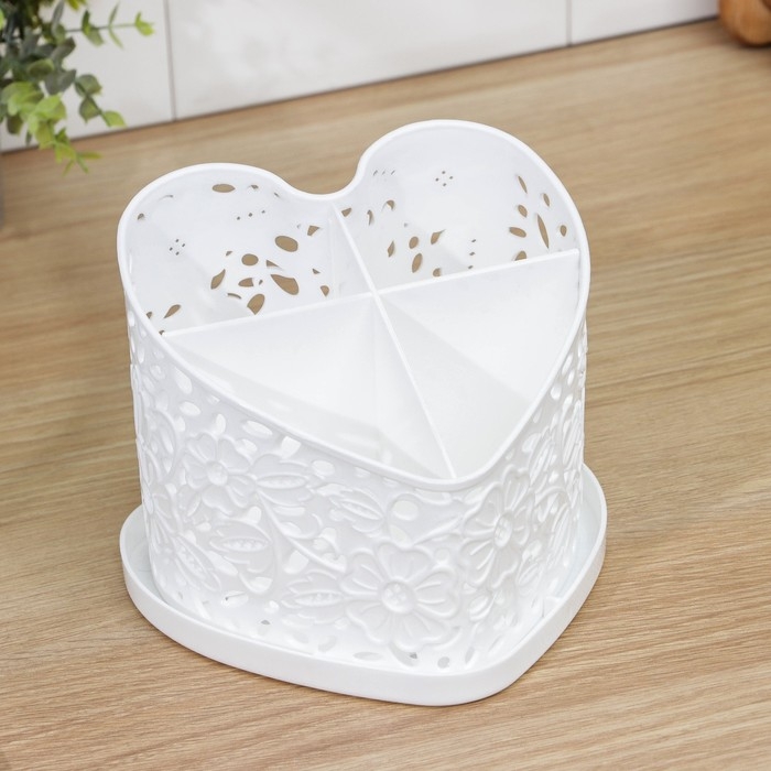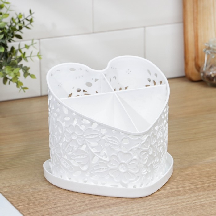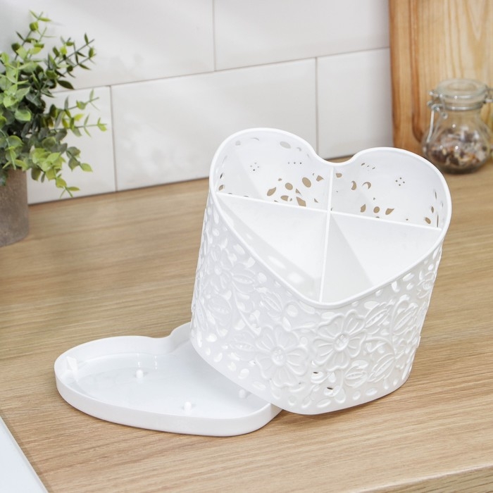 Подставка под столовые приборы «Сердце», 17×18,5×15,5 см, цвет белый