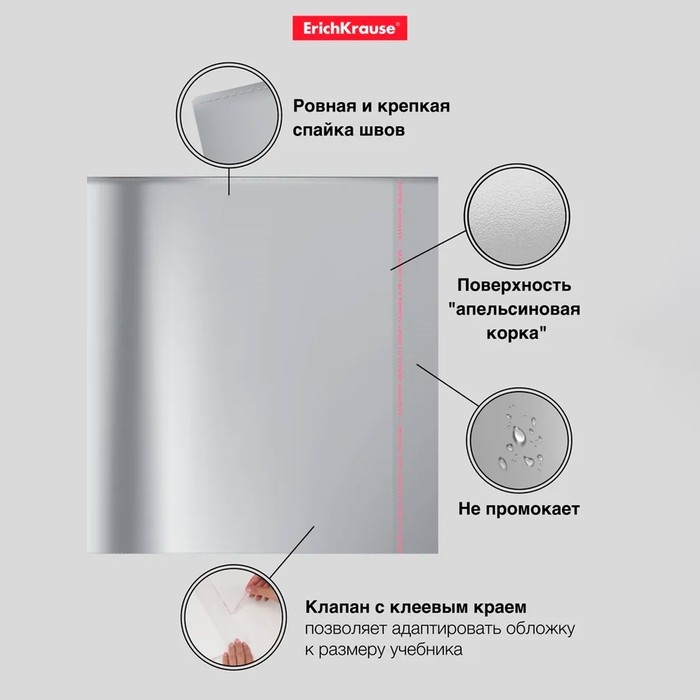 - Широкий клапан с клеевым краем позволяет адаптировать обложку к размеру учебника.
