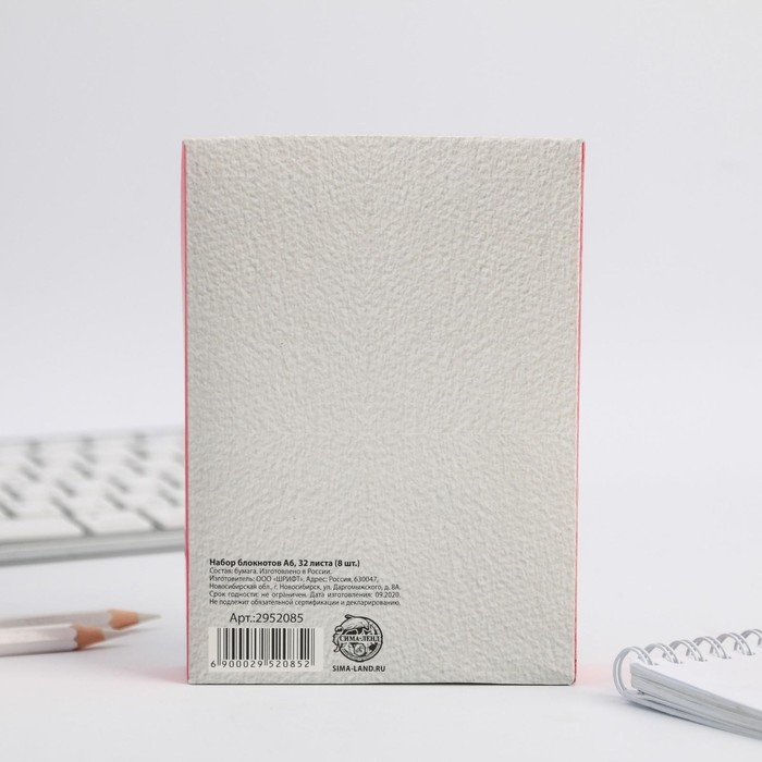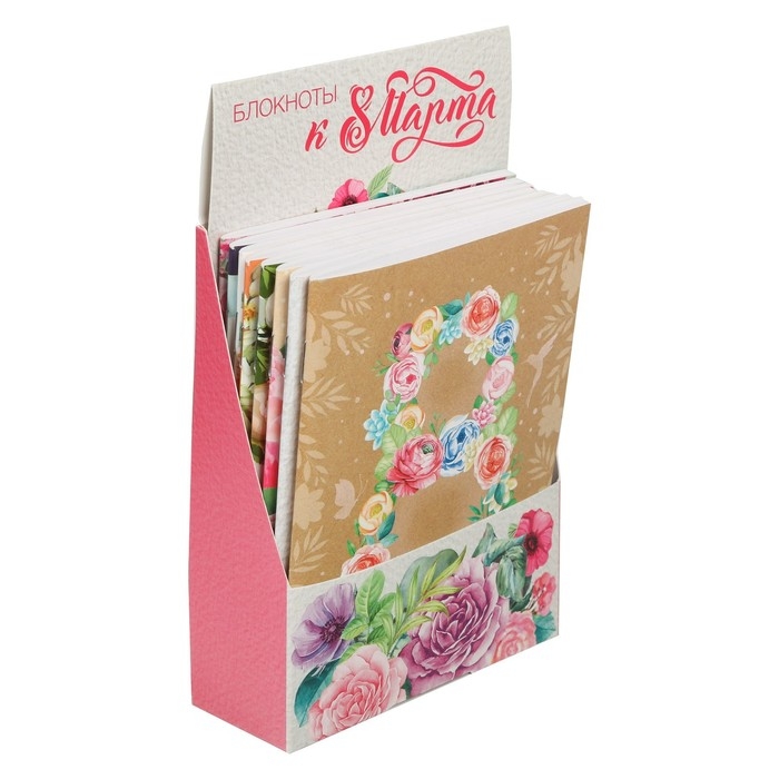 Набор в шоу-боксе «К 8 марта»: 8 блокнотов А6 на скрепке, 32 листа