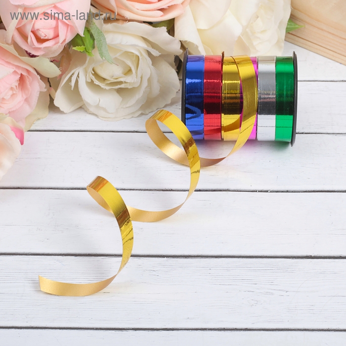 Лента упаковочная металлизированная, ассорти, набор 6 шт., 0,5 см х 10 м