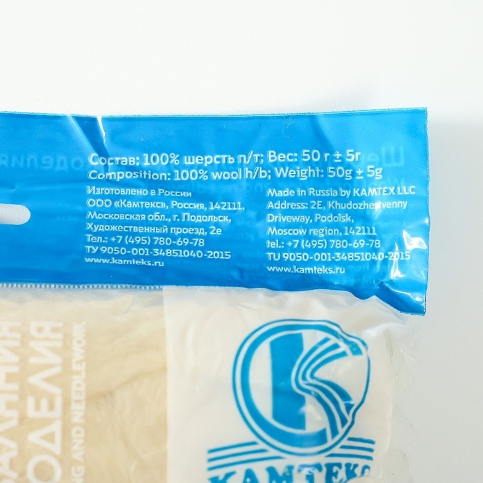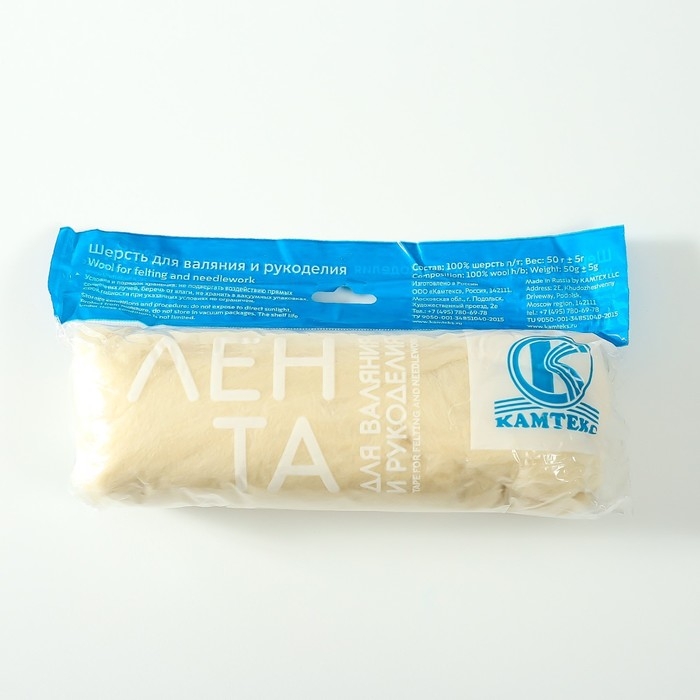Шерсть для валяния 100% полутонкая шерсть 50 гр (001 суровый)