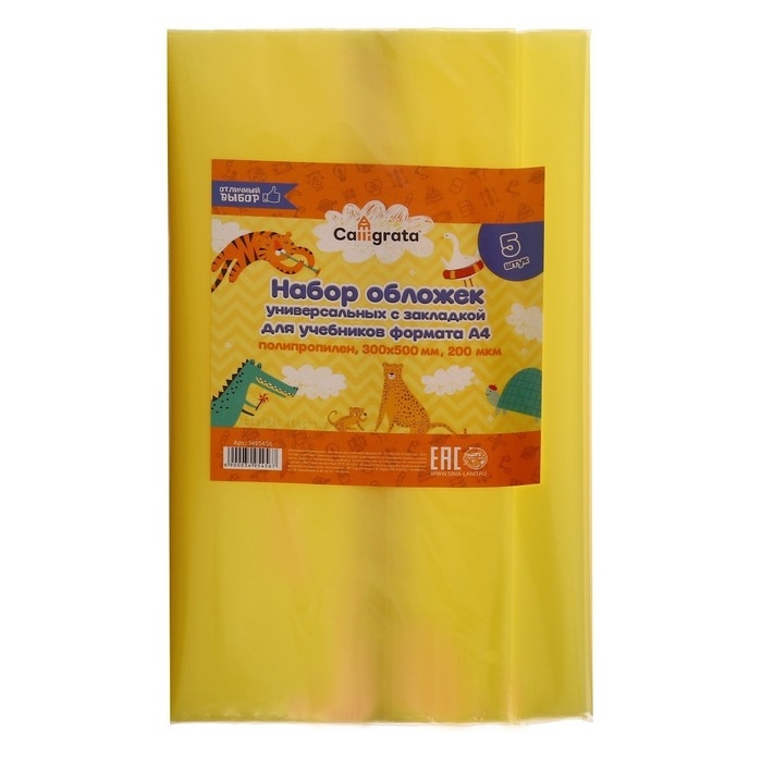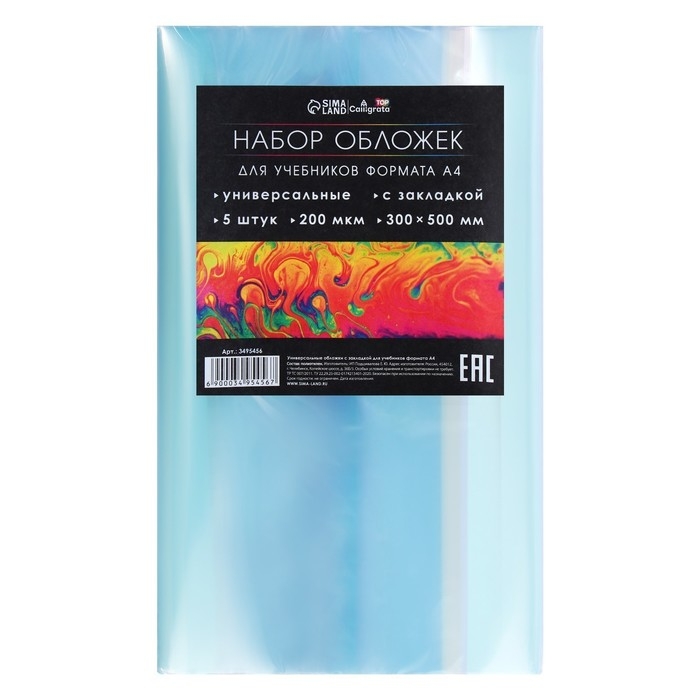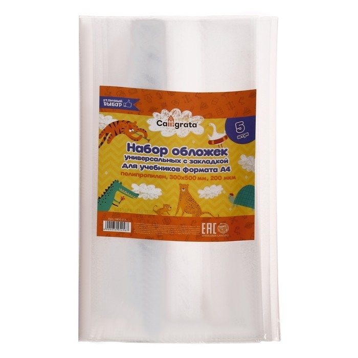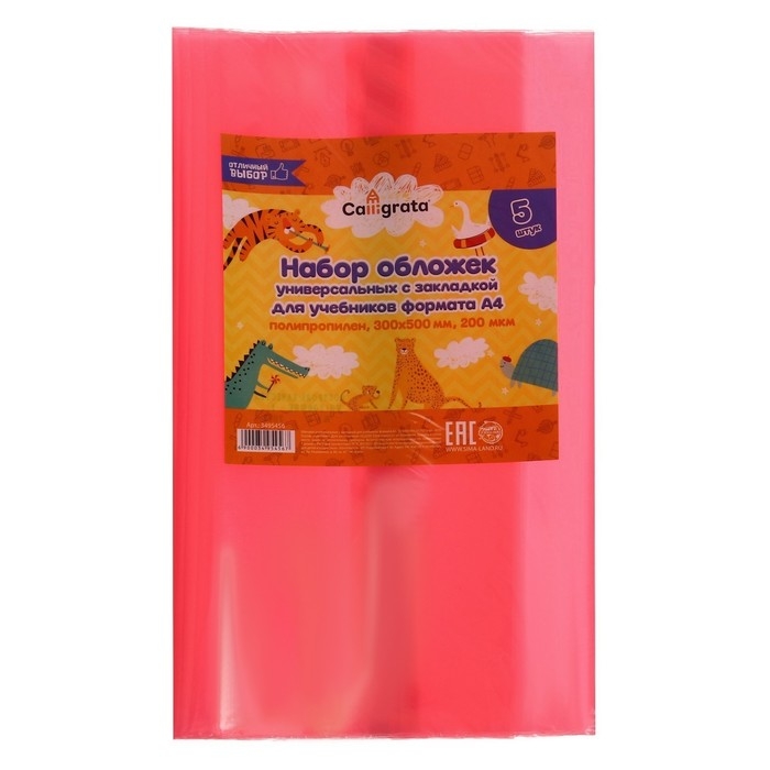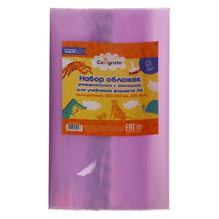 Набор обложек ПЭ 5 штук, 300 х 500 мм, 200 мкм, для учебников формата А4, универсальная, с закладкой, МИКС