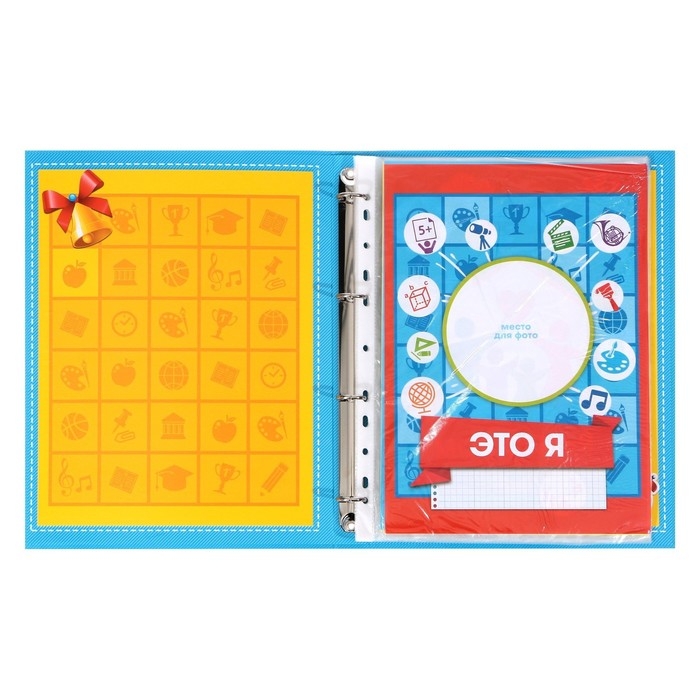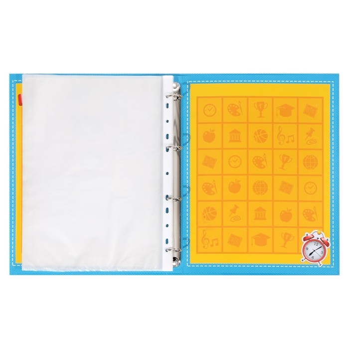 Папка-портфолио А4, Calligrata "Веселая школа", пластиковая, на 4 кольцах, для школьника, 20 файлов