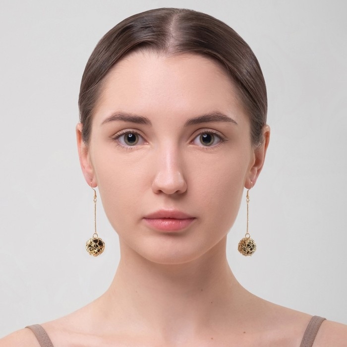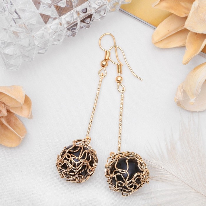 Серьги висячие «Шар плетёный», цвет чёрный в золоте, 6,5 см
