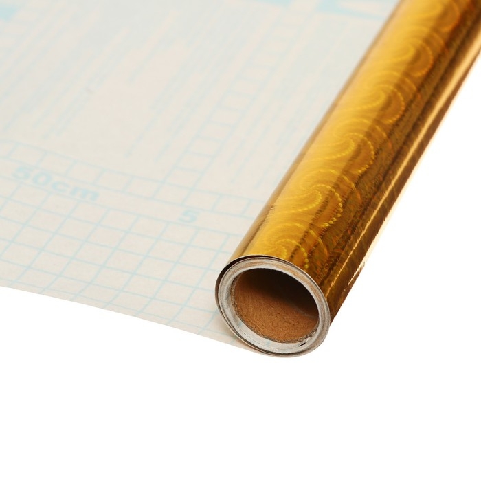 Пленка самоклеящаяся "Жатка", голография, золотая, 0.45 х 3 м, 3 мкм,