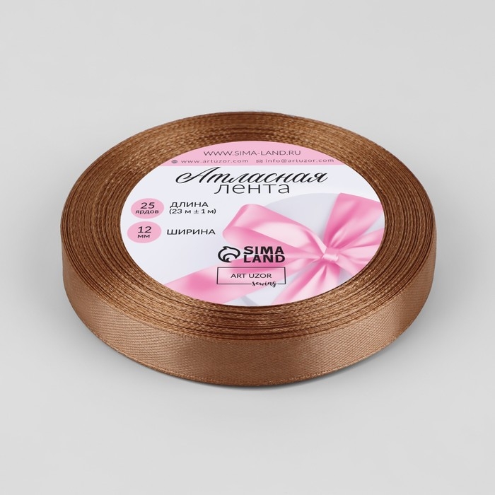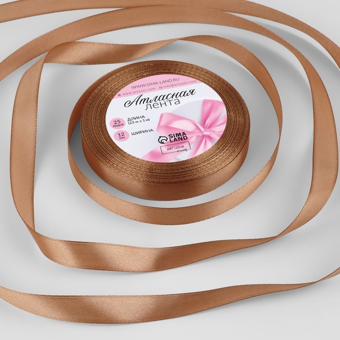Лента атласная, 12 мм × 23 ± 1 м, цвет светло-коричневый №136
