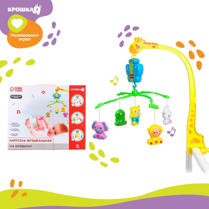 Мобиль музыкальный на кроватку «Бабочка. Малыш зоо», заводной, Крошка Я