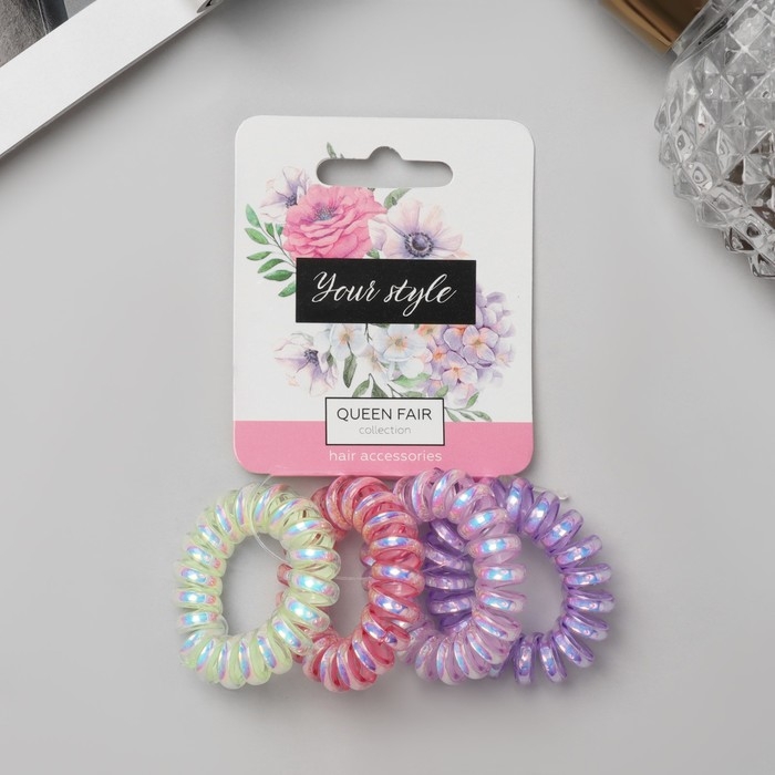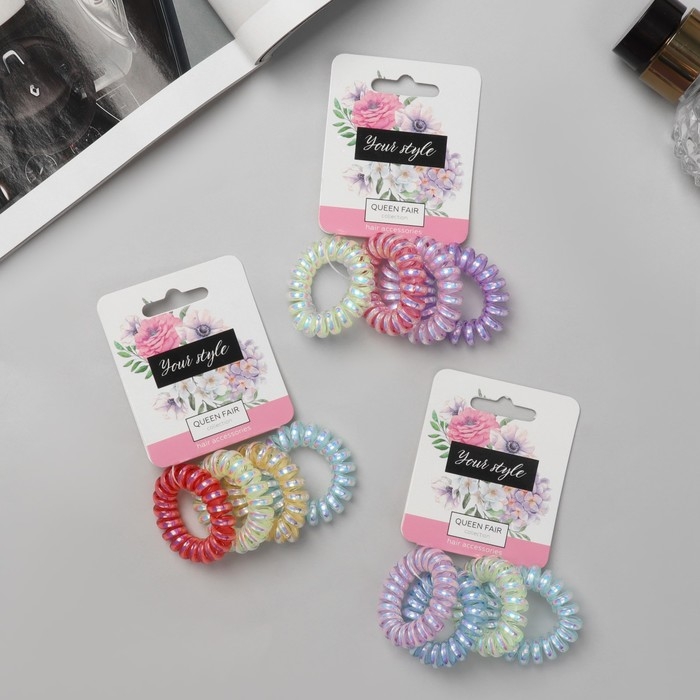 Резинка для волос "Пружинка" (набор 4 шт) глянец перелив, d-3,8 см, микс