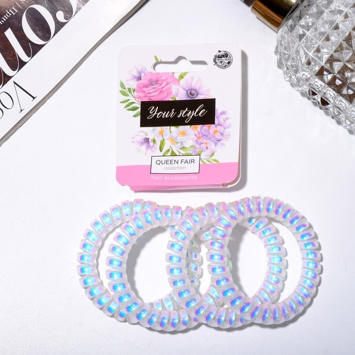 Резинка для волос "Пружинка" (набор 4 шт) белый перелив, d-5,5 см