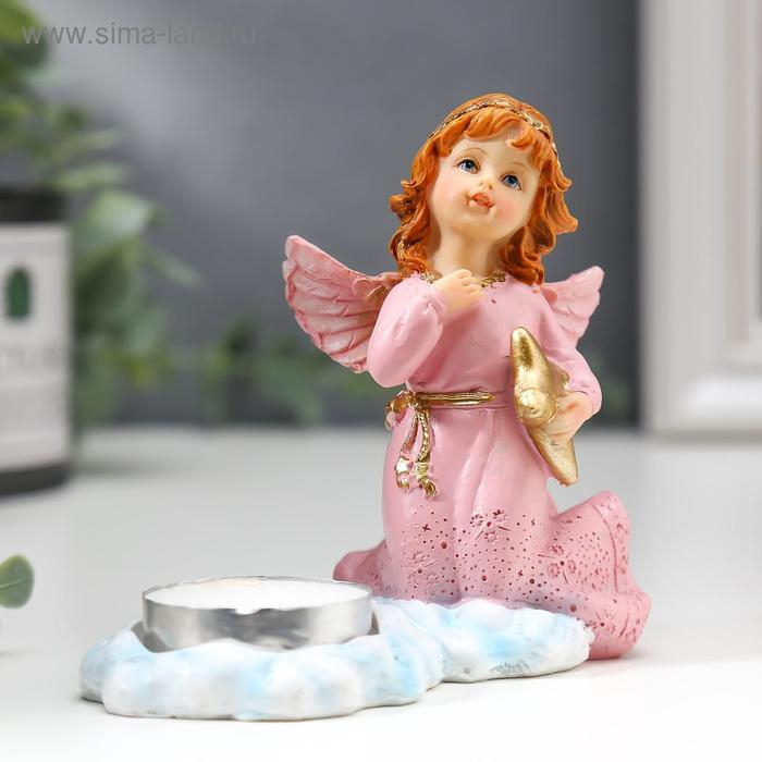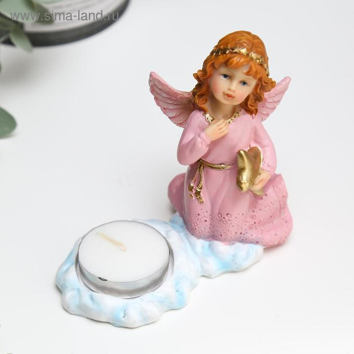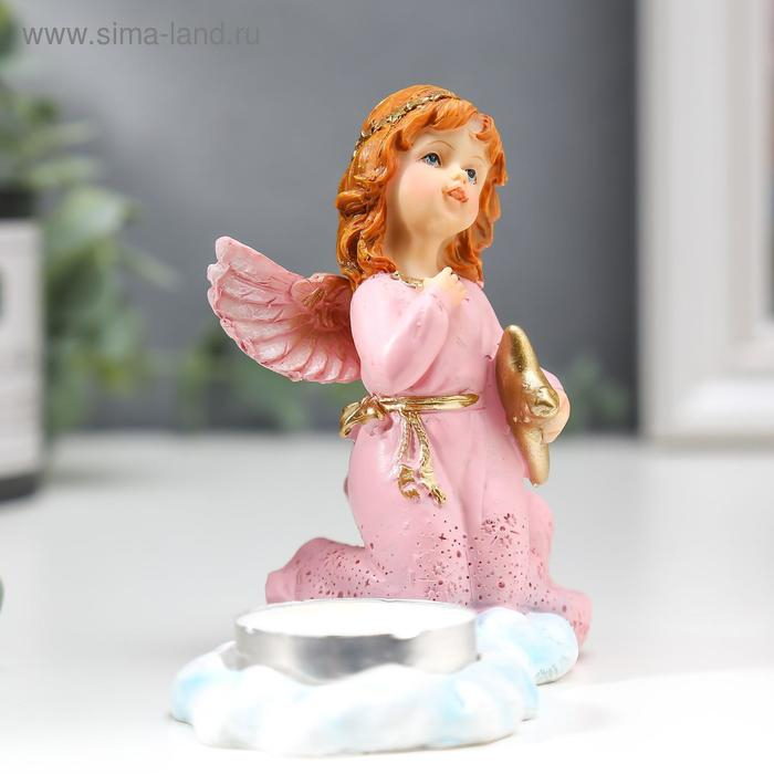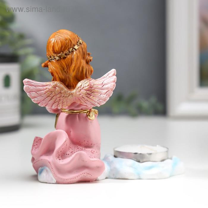 Сувенир полистоун подсвечник со свечой "Девочка-ангел в розовом платье" 9х12х5,2 см