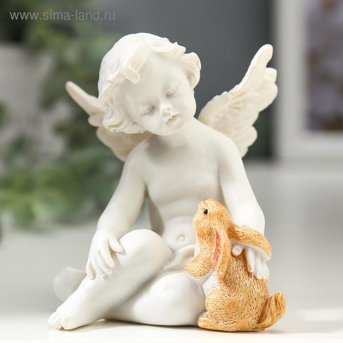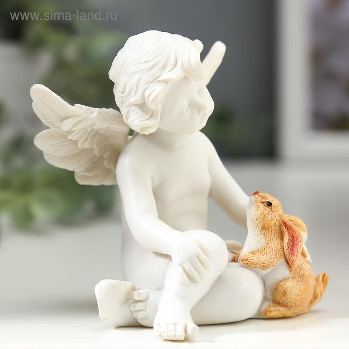 Сувенир полистоун "Белоснежный ангел с цветным кроликом" 6,8х6,5х6 см