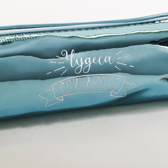 Пенал мягкий 1 отделение, 80 х 190 х 30 мм, кожзам зеркальный "Чудеса случаются" зелёный